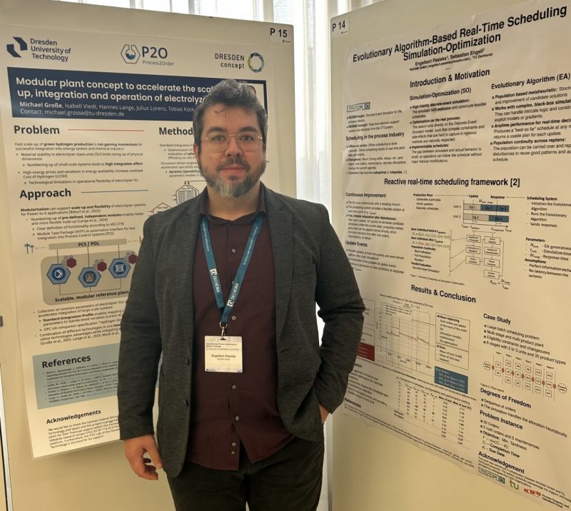 At this years Annual Meeting of Process Engineering and Materials Technology (PEMT 2025, November 10-11, Frankfurt/Main, Germany), INOSIM employee Engelbert Pasieka presented a poster on Evolutionary Algorithm-Based Real-Time Scheduling via Simulation-Optimization. He introduced a reactive real-time scheduling framework based on Simulation-Optimization (SO) using an Evolutionary Algorithm (EA). The approach utilizes a high-fidelity Discrete-Event Simulator to both construct and evaluate feasible schedules, ensuring that complex constraints and side effects are naturally respected without the need for explicit gradients.